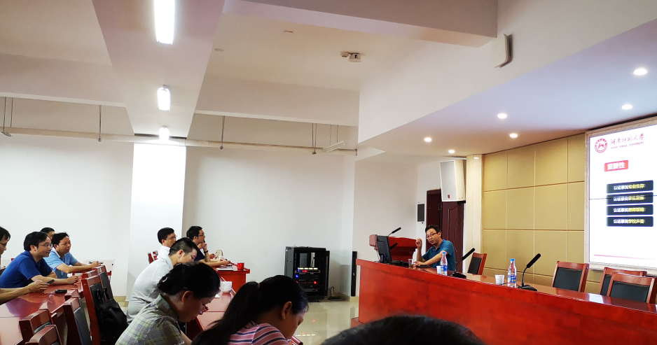 7月10日下午,公司于立言楼B4-1召开师范专业认证经验交流会。此次会议由湖南师范大学地理科学系主任邓楚雄教授担任主讲人,公司教务处评建办副主任余光辉主持,公司经理刘奇玉,副经理聂志军、欧阳萍,化学与化工公司副经理陈述、生命科学公司副经理周定港、外国语公司副经理曾建松以及各公司师范专业认证建设工作负责人等到场与会。
