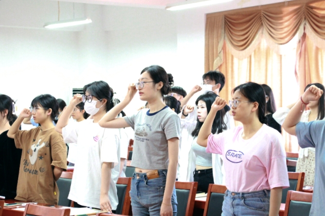 会议伊始,罗振军同志为毕业生党员们上了最后一堂主题党课,讲述青年党员的使命与担当。他表示,毕业生党员们应当认真学习党章党规,深刻认识和把握习近平新时代中国特色社会主义思想,增强党员的核心素养。同时,对毕业生党员提出了三点建议和要求:一是要心中有信仰,做政治上的明白人;二是要肩上有担当,做工作上的实干人;三是,要脚下有力量,永远信党爱党,坚定共产主义事业。最后,罗振军带领毕业生党员们重温入党誓词,为最后一堂党课画上了完美的句号。