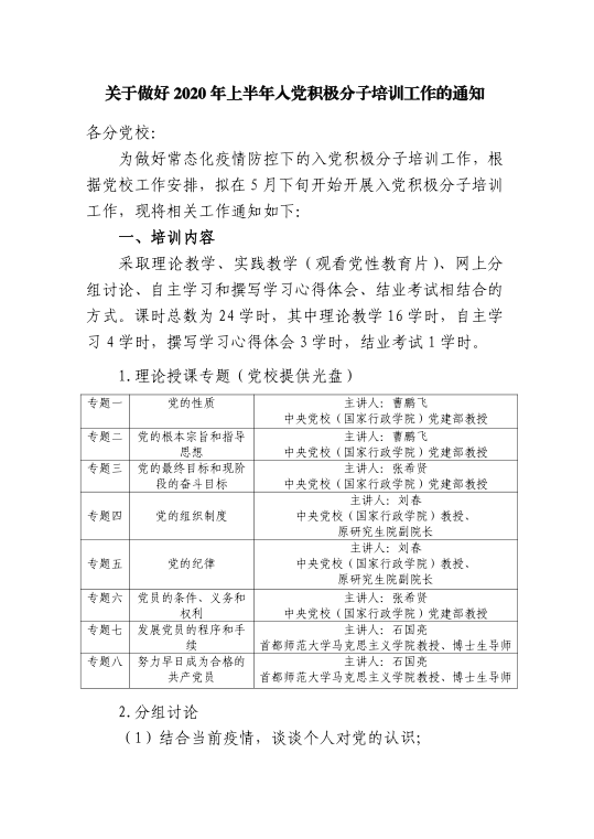 关于做好2020年上半年入党积极分子培训工作的通知
