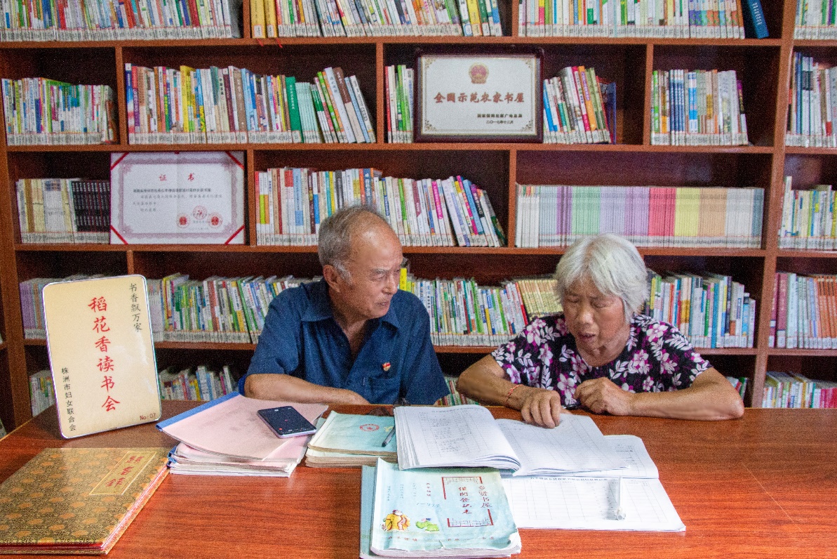 ▲夏昭炎夫妇整理小书屋借阅记录
