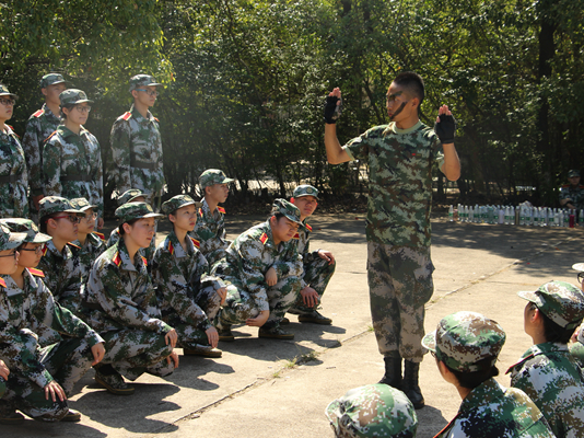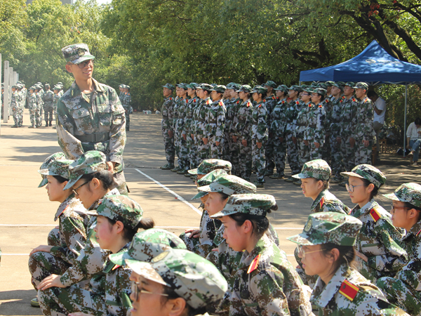 上午八点,公司2018级新生八个排的“新兵”个个身穿迷彩军装,在北校田径场集合,参加2018级新生军训动员大会,印有“beats365vip官网登录入口”的大旗飘扬在公司新生队列的最前方。动员大会上,公司新生认真听取学习了副董事长的报告、教官代表的发言,欣赏了教官们带来的精彩表演。会后,全体新生由各排教官带领,前往位于训练场地—北校旧篮球场,开始正式训练。“拇指尖贴于食指第二关节,中指贴于裤缝……”教官从最基础的军姿动作要领开始亲自示范,在一声声刚劲有力口号下,新生们一丝不苟的完成立正、稍息、跨立、坐下、起立等训练任务。