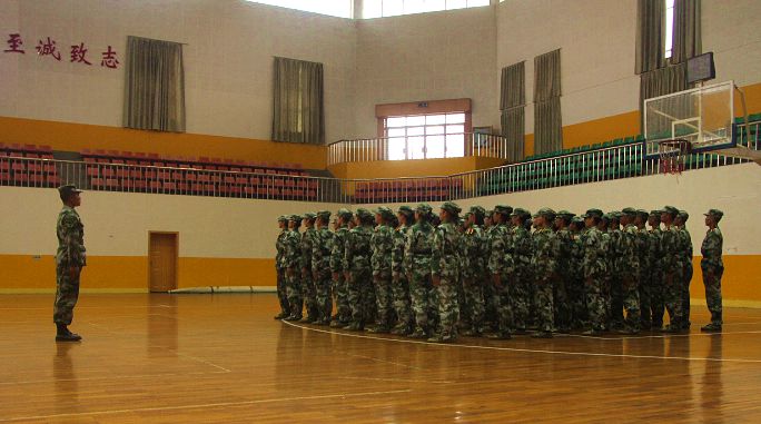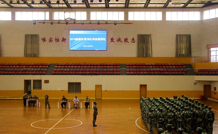 在前一公司会操完毕之后,公司方阵队在尹教的带领下,迈着整齐的步伐,庄严肃穆地走向体育馆正中央,开始队列会操评比。此次评比内容为:立正、稍息、跨立;停止间转法;蹲下、起立;敬礼、礼毕;齐步行进与立定;跑步行进与立定;正步行进与立定。方阵队全体成员认真聆听教官的指令,动作简洁有力,口号铿锵有力,各个流程都顺利完成。最后 比赛结束,学员们边喊着口号“雄鹰翱翔,我心飞扬;尖刀人文,勇创辉煌”,边有序离场。