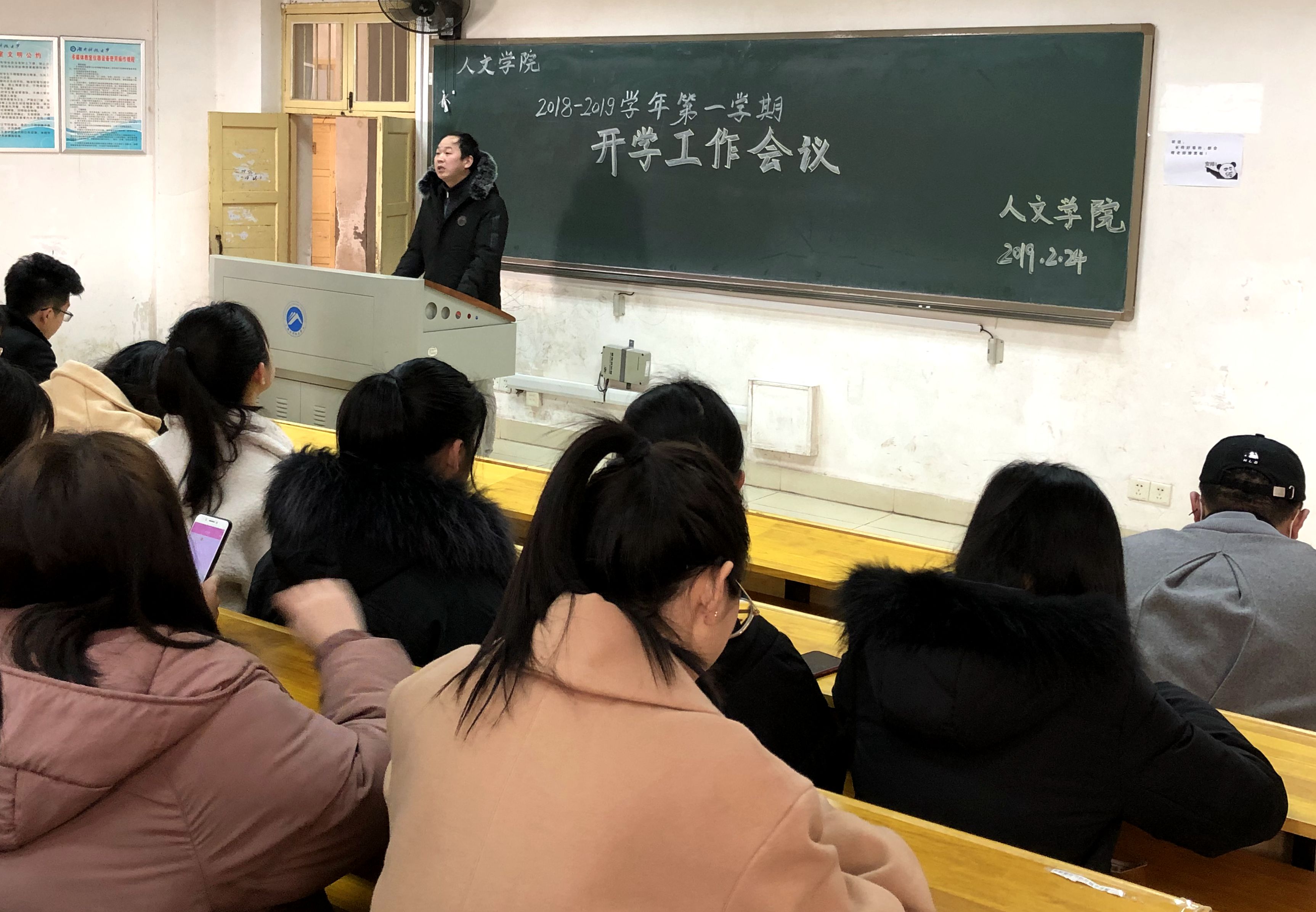 为了迎接新学期的到来,保证新学期员工工作的顺利进行,公司于2月24日上午9点在第十教学楼东附楼104召开2019年新学期第一次全体员工干部大会,本次会议由马忠石老师主持,主席团成员、各部门干部以及各班班长或团支书参加。