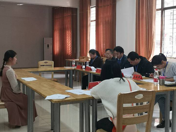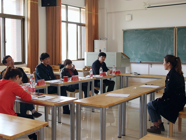 在立言楼B417的学科语文(非全日制)面试教室里,考生罗萍姣因紧张,自我介绍断断续续,经理刘奇玉笑着对她说道:“没关系啊,不要紧张,慢慢来,不急。”关切的眼神让她感到一些放松,长舒了一口气害羞地笑了笑,开始了流畅地回答。老师们一些专业的提问,她也能回答出来。吴投文老师对她“如何训练听说读写方面”问题的回答表示赞许,他说“语文和生活是分不开的。”