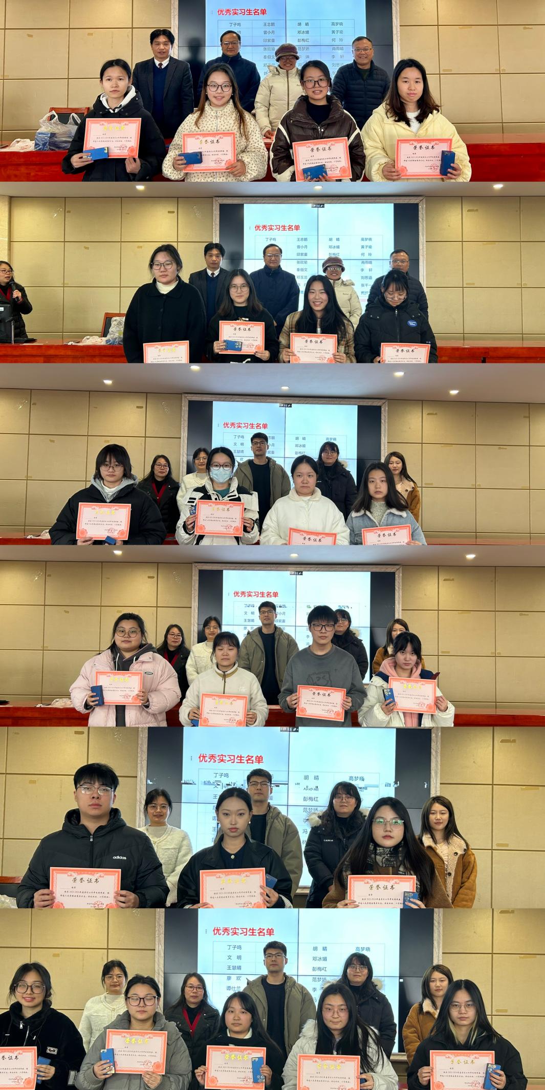 会上,王超群着重强调了毕业论文质量把关的重要性,要求严格遵循学术规范,精心指导员工开展论文创作,确保每一篇论文的质量。最后,刘艳凤对本次会议进行了全面总结,鼓励同学们既要对未来的发展方向心中有数,做好清晰规划,又要在前行的道路上脚踏实地,一步一个脚印地去践行理想。伴随着热烈的掌声,21级毕业实习总结暨表彰大会圆满落下帷幕。