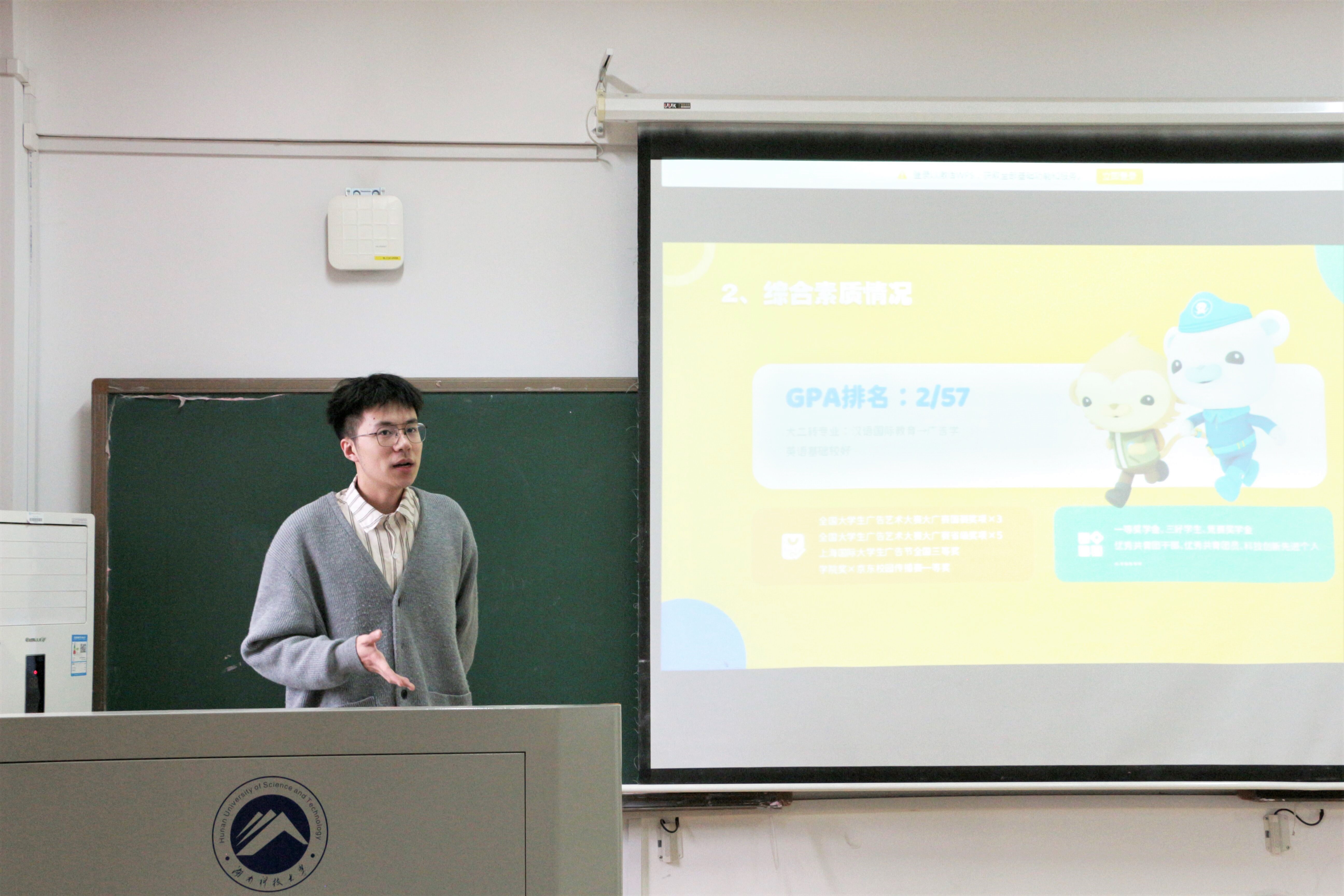 随后,已被相关公司录取为研究生的优秀员工代表依次就学习与生活两方面分享自己的经验与感悟。被中南大学录取的19级广告学一班的李赞在分享自己的英语学习方法和备考经验时指出:“要跳出自己的舒适圈,去剖析自己”;被华中师范大学录取的19级历史一班吴有飞总结出坚持就是胜利,在学习中要做好选择、劳逸结合的经验;被上海师范大学录取的19级汉语言文学专业的李世浩则表示备考要打好基础,考研需坚持;被南京师范大学19级历史一班的卢东玥则从院校选择、备考经验等方面进行分享,重点强调在备考过程中,要做好时间规划,查漏补缺,调整好心态。