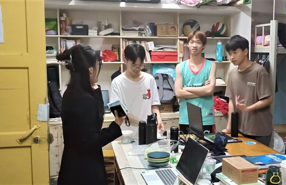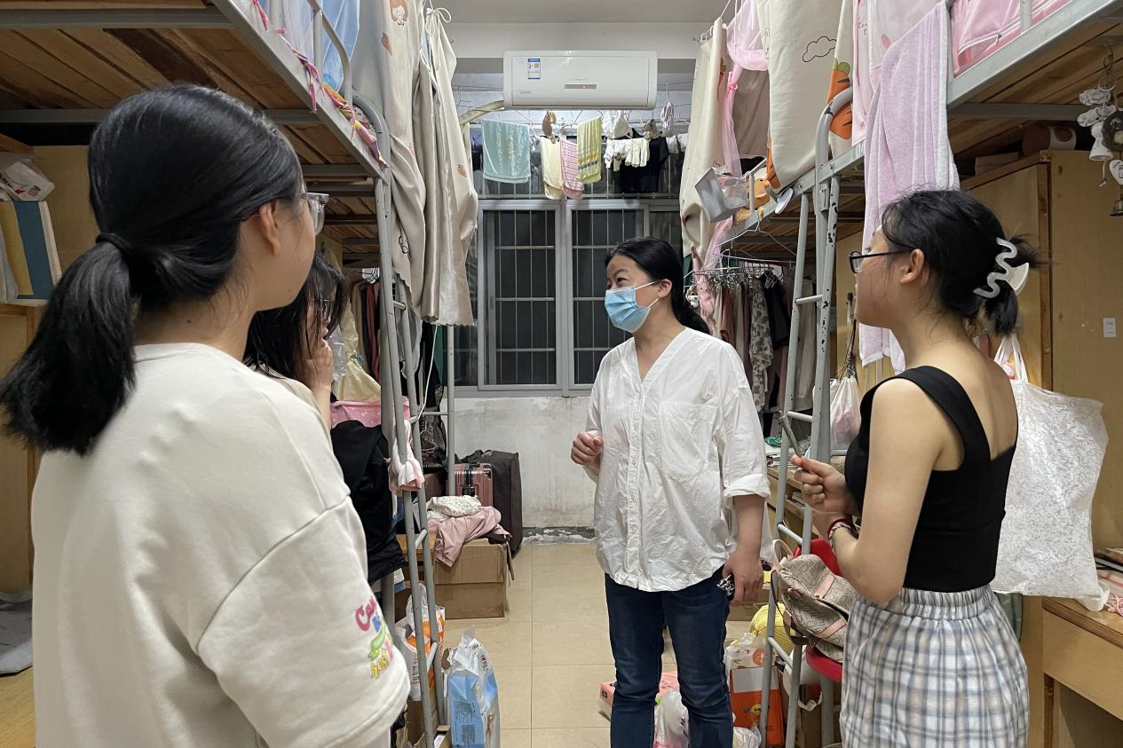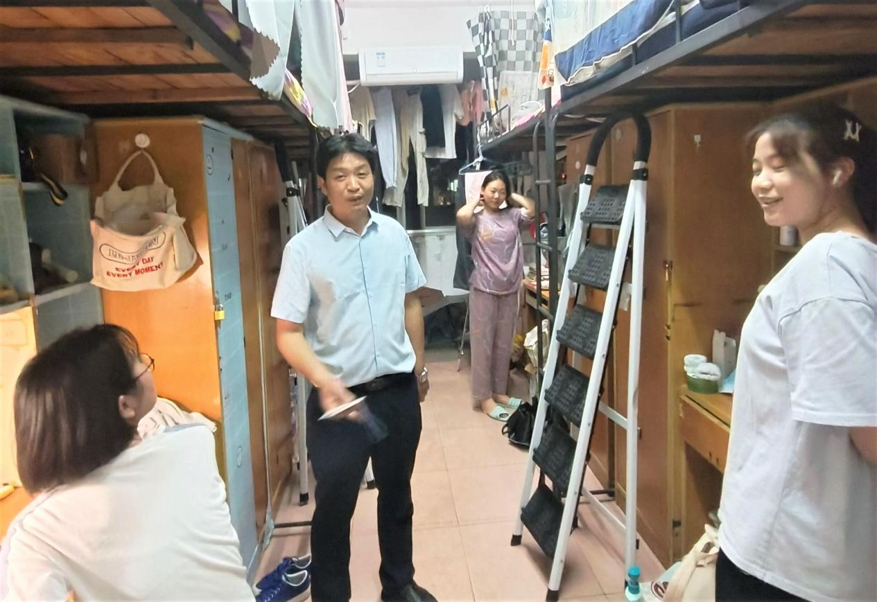 寝室中,罗振军关心员工健康问题,提醒员工做好个人防护,预防感冒,注重宿舍卫生情况,定期通风,经常清洁,尽量避免细菌滋生。为减少宿舍安全隐患,老师们就宿舍空调的使用、寝室用电安全与不使用大功率电器、不私拉电线等方面进行强调要求。此外嘱咐道:“夏季临近,大家要远离野外水源,警惕下河下江,保护自身安全。”正值学风建设月和考试月,老师们鼓励员工认真复习,加强学习管理,积极备考,营造良好的学习氛围。