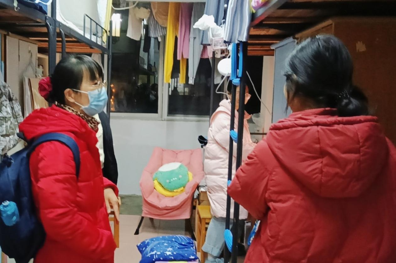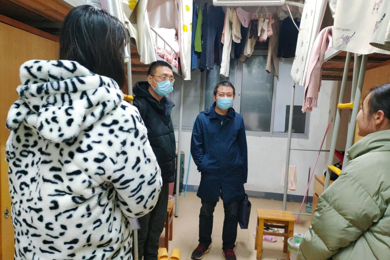 老师们对员工宿舍进行细致地安全及卫生检查,并说明宿舍里使用大功率电器、私拉电线的危害,叮嘱员工注意宿舍用电安全 保持寝室卫生,养成爱干净的好习惯。“冷不冷呀?多加衣服哟!”曾志东关心地问着穿着单薄的同学,近期温度骤降,老师们询问员工保暖措施是否到位,学习和生活是否存在的问题。针对当前严峻的疫情形势,邓辉反复提醒同学们非必要不出校,提高防疫意识,注意自身健康安全。老师们细心叮嘱,员工们积极回应,寝室内一片欢声笑语。