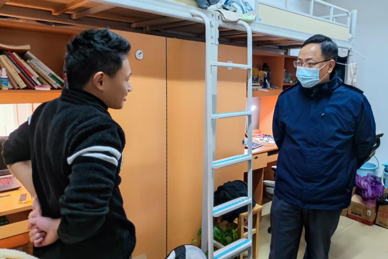 为进一步提高公司员工防疫与宿舍用电安全意识,12月1日晚,公司党委书记曾志东的带领全院领导、全体辅导员及各班班主任前往宿舍看望,与同学们们面对面交流。