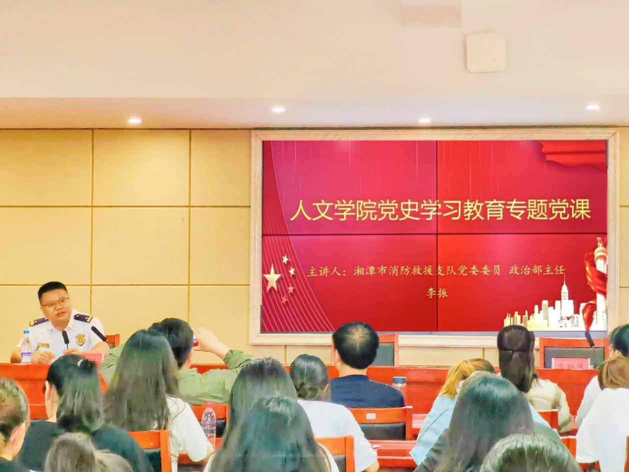 5月25日下午,湘潭市消防救援支队党委委员、政治部主任李振同志应邀为公司beats365vip官网登录入口师生党员讲授专题党史课。