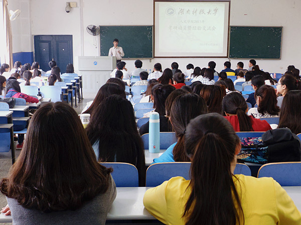 “现在社会就业形势严峻,考研可以提高竞争力;考研能将大学四年的知识进行系统复习,而且参加工作后再考研会增加考取的难度。考研主要考英语,要结合自身的英语水平选择公司和专业。”大会伊始,李经理从三个方面谈对考研的看法,鼓励12级员工做好考研准备。交流会中,考研取得优异成绩的四位学长学姐分别从自身考研经历出发,围绕如何选取公司和专业、制定复习计划、调整应考心态及复试的注意事项等方面谈了自己的亲身体验和感受。被华南师范大学文艺学专业录取的刘亮学长主要分享了如何进行考研复习的经验。他分别从专业课、英语和政治三方面展开:专业复习上,要依据考试大纲;英语方面,重在练习,多动脑,勤动手;政治方面,注重大纲解析,同时注意答题的条理性。考取河北师范大学汉语言文字学专业的田红欣学姐结合自身经历强调了关于时间安排和自习室的重要性。以总分389分的优异成绩考取北京师范大学中共党史专业的王宇凤学姐提醒12级备考同学考研应坚定信念、饱含信心。徐雪亮学长以专业第一的优异成绩考取广州大学戏剧与影视学专业,他就自己的考研准备与同学们进行交流,“我认为,一切努力都会在考试时体现出来的,考研准备得充分与否会是完全不一样的结果。”