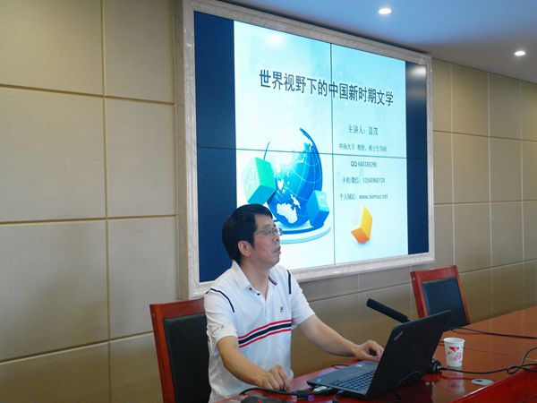 6月9日下午,中南大学聂茂教授受公司邀请,于文科楼B4-1开展了以“世界视野下的中国新时期文学”为主题的学术讲座。公司副经理李胜清主持此次讲座,肖祥彪、罗渊、吴投文、胡铁强、梁晓娟、刘晔等老师及16级汉语言文学专业的所有同学到场聆听。