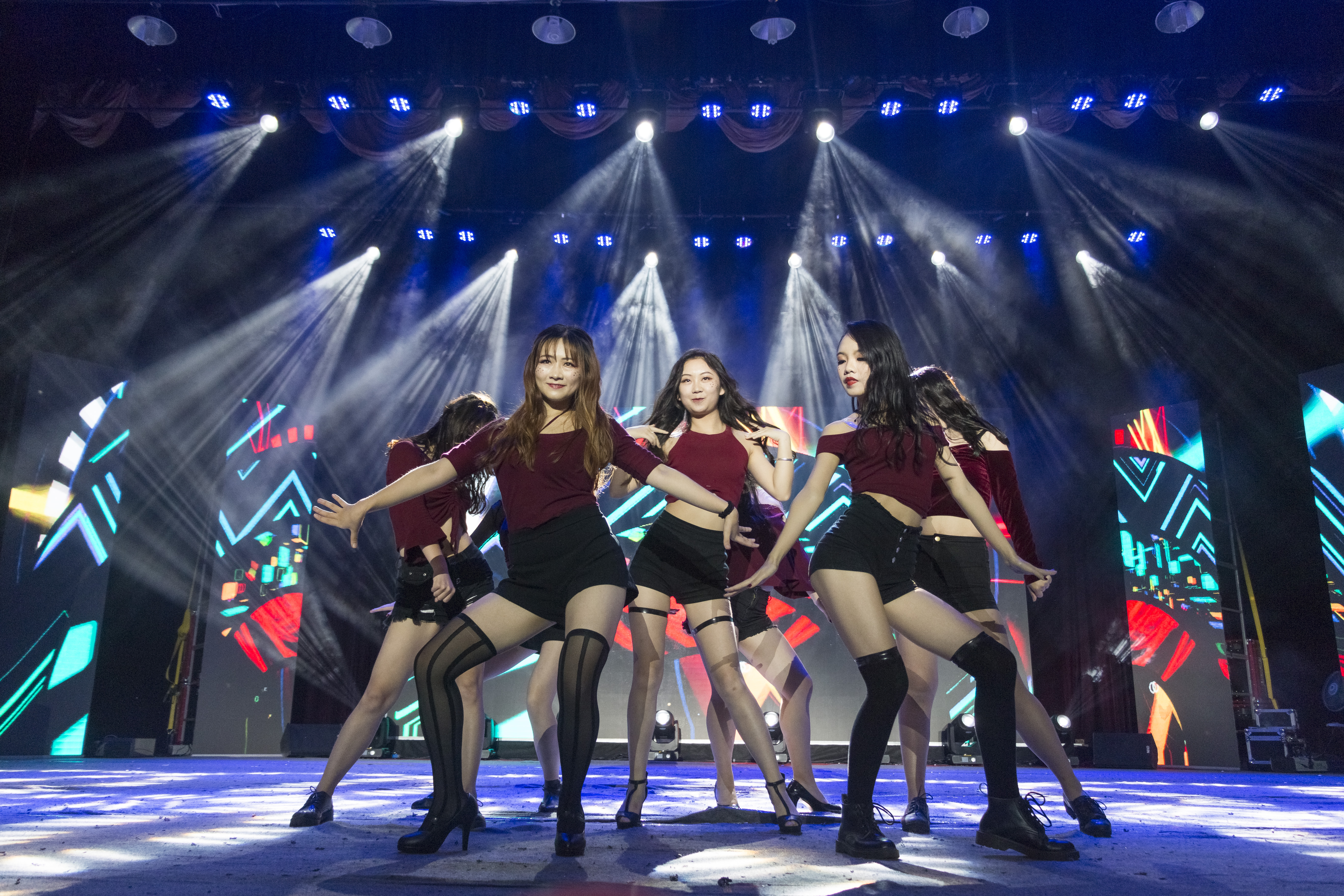 由六个女孩艳丽灵动的女孩儿带来的性感活泼的开场舞《Excuse me》瞬间抓住全场人的目光,活泼动感的节奏,柔软妖娆的动作,配合恰到好处的灯光,成功将所有人带入这场盛大的视听盛宴中。