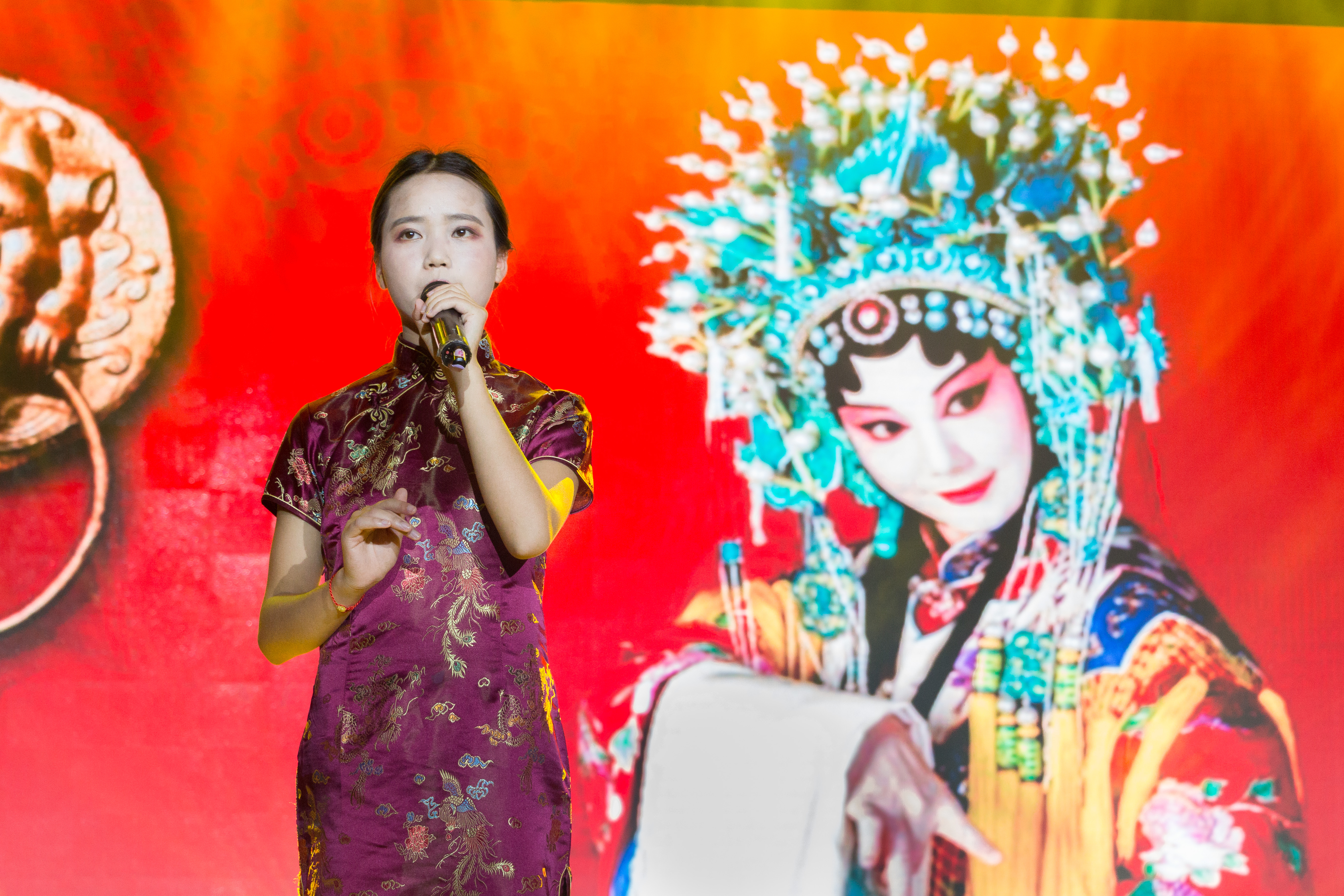 咿呀声里暗颦眉,听取梨园歌一片。16级研究生戏剧与艺术专业的钱子凡等甫一登台,便引起惊叹声一片。拈手回眸,浓艳夸张的妆容里尽是曲中情意,何故惹相思,原来是梨园一梦,戏剧连唱《行云流水梨园梦》真正让人感受到什么是国粹,什么是古典文化精华。眉间眼角都是醉人风景,举手投足尽是身段轻盈,唇间心上却已望断天涯梦未醒。数种风情意蕴,引得台下一片赞叹之声不绝于口。