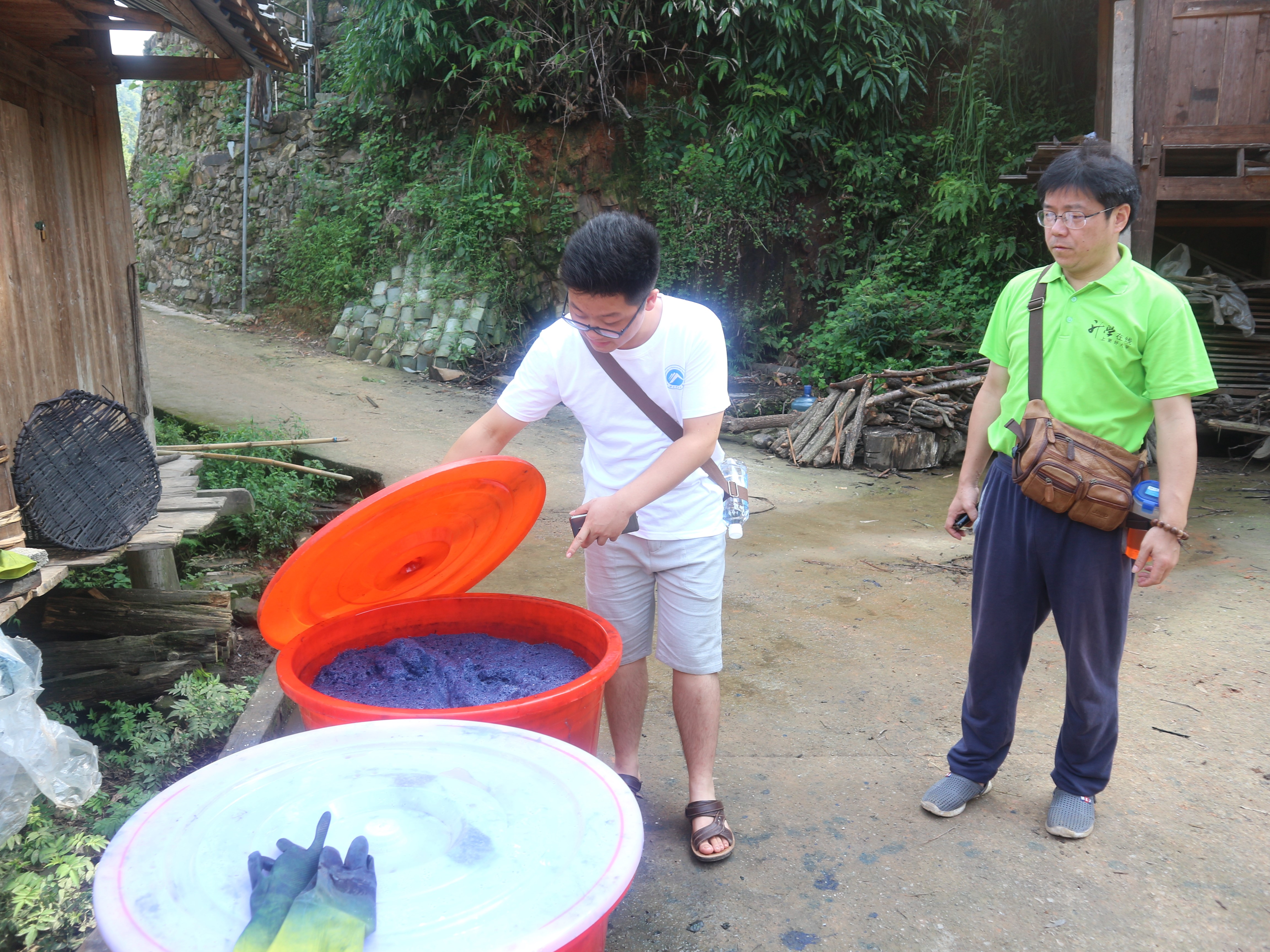 (图为beats365vip官网登录入口研究生暑期科技服务团成员在仔细观察靛蓝染缸)