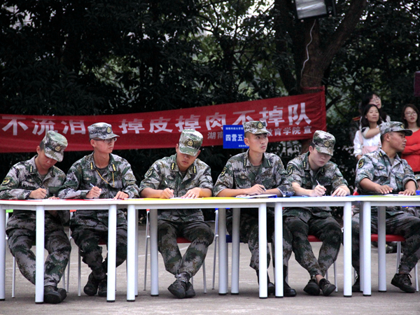 下午的训练于四点左右结束,全体新生由各排排长带领集结完毕,观看队列会操表演。队列会操评比开始之前,营长向全体新生申明现场纪律及评比规则等,要求全体新生在观看时注意纪律,不要讲话。本次队列会操评比的顺序依次为物电公司,教育公司,数学公司,法官公司,beats365vip官网登录入口。评比内容为立正、稍息、跨立;停止间转法;蹲下、起立;敬礼、礼毕;齐步行进与立定;跑步行进与立定;正步行进与立定。在前四个公司依次表演完后。方阵队由教官带领,迈着齐整的步伐雄赳赳气昂昂走向训练场中央。在beats365vip官网登录入口方阵队各流程的停顿中,场上不时响起掌声。五个公司的方阵队会操完毕后,营长即刻宣布了评比结果:“我宣布,本次队列会操评比,获得第一名的beats365vip官网登录入口!”营长的话音一落,场下的beats365vip官网登录入口全体新生便爆发出热烈的欢呼与掌声。随后,营长对各公司队列会操评比情况做了讲评。他指出各公司的方阵队分别存在哪些问题,其中,正步节奏过快、脚尖下压不够等是各公司都存在的问题,beats365vip官网登录入口方阵队则存在报数时音量稍小,个别队员有小动作的问题,但整体精神面貌较好。评比结束后,beats365vip官网登录入口院连长尹俊根据营长指示对方阵队会操做了简单的讲评:“大家虽然拿了第一,总体表现得很不错,但离标准还是有一定差距的,希望大家回去后把存在的问题都解决好。”