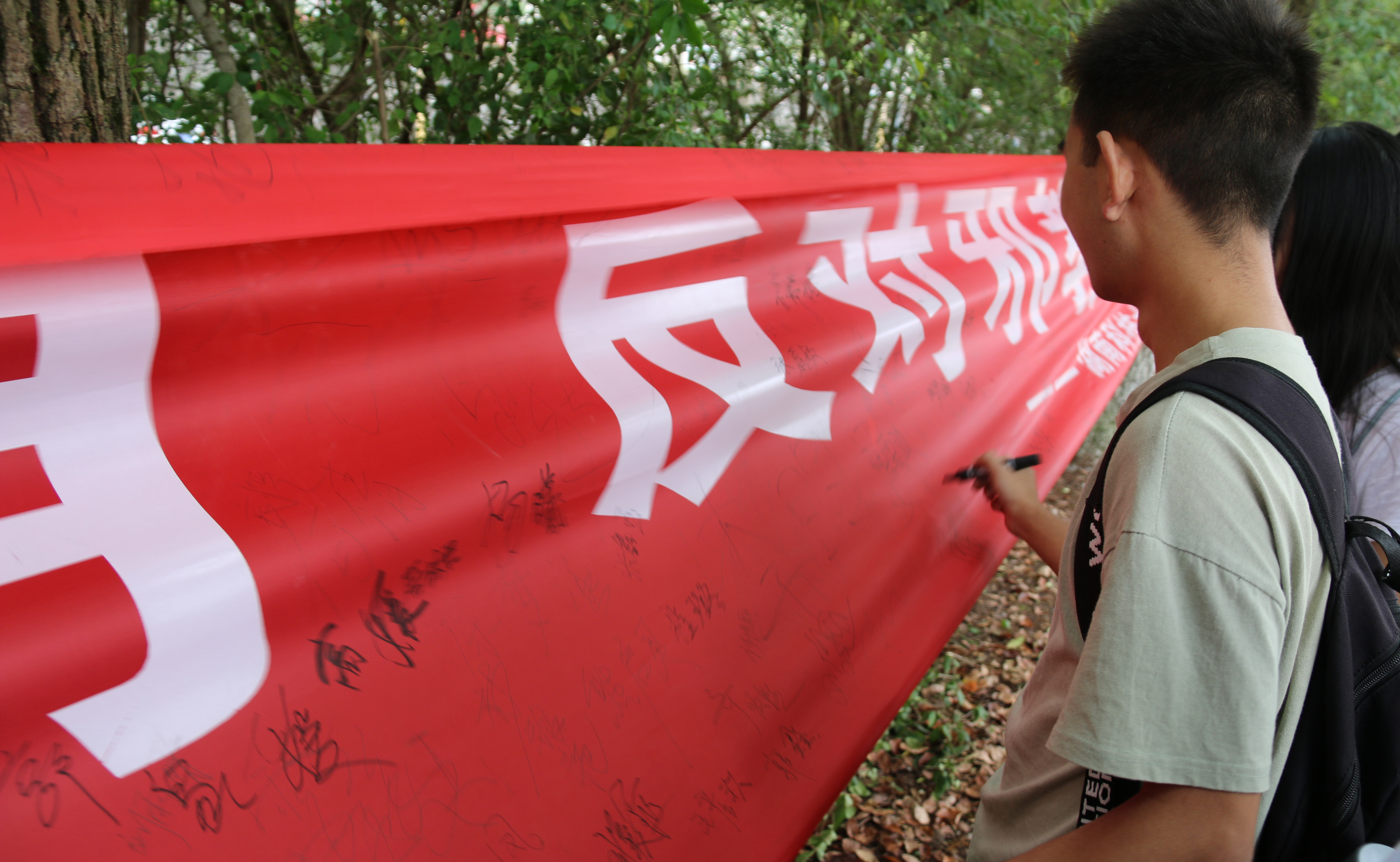而在反邪教签名活动上,公司宣传部门积极组织,在场员工纷纷积极参加,均在横幅前有序排成了长队,认真倾听宣传人员解说反邪教相关知识。此后,他们以高度认真的态度,纷纷拿起马克笔,一笔一划地在横幅上郑重签下自己的名字。顷刻之间,长长的横幅上都写满了密密麻麻的姓名,这体现着新生们对反邪教活动的支持与认可。