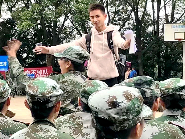 “之前,队里许多员工存在军姿不良等问题,许多人为了踢好正步,在队伍里练习了一遍又一遍。守在队伍旁边,看着队里的孩子们军训姿势和规范一天一天地进步,我真的很开心!”她说,倒完水起身,望着一排排来回走着整齐队形的新生,她脸上露出了欣慰的笑。