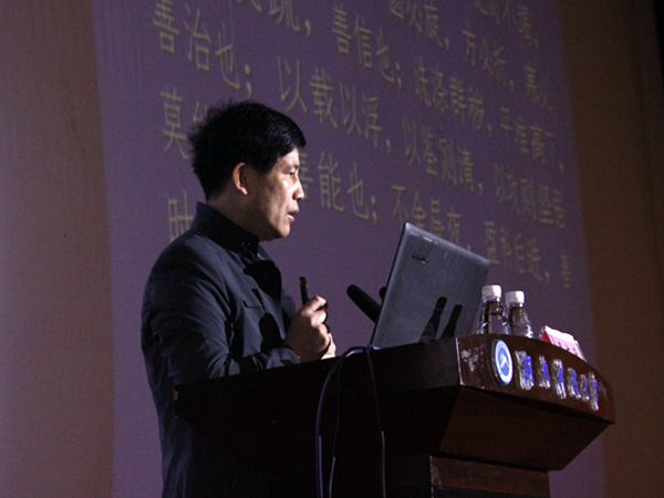 三是“不敢为天下先”。老子认为人生应向水学习。水不仅柔弱,而且能够处下,不争。善利万物而不争是它的基本品格,处下则是它的表现形式。吴教授认为,老子揭示出水处下能容的宝贵品格,在当今具有重要的启迪意义:统治者谦卑处下,先民而后身,即先天下之忧而忧、后天下之乐而乐,就能得到人民拥护;普通个人也不必事事都争第一,只要真正努力了就行。老子激赏水“至柔、处下、不争、包容、善利万物”的品德,并由此而提出“上善若水”的观念,这不仅对古代士人立身处世有深远的影响,对我们今人来说也是重要的人生智慧。由此,最后,吴教授表达了希望同学们成为“若水”的“上善”之人的期许。