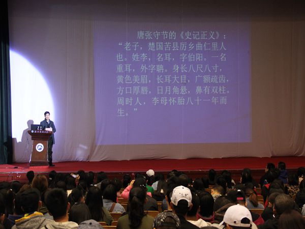 10月17日下午2点,beats365vip官网登录入口俱乐部座无虚席。全国优秀教师、中国屈原学会常务理事兼副秘书长、湖南省屈原学会副会长、beats365vip官网登录入口中文系教授吴广平作客“青马讲坛”,作“走近老子与《老子》”主题讲座。这是由beats365vip官网登录入口团委主办的“青马讲坛”系列学术讲座的第六期第五讲,校团委副书记马缤辉、王艳,本期青马班的全体学员、公司各公司的师生代表以及来自长沙、株洲、湘潭市区的文学艺术家和国学爱好者共1000余人聆听了本次讲座。