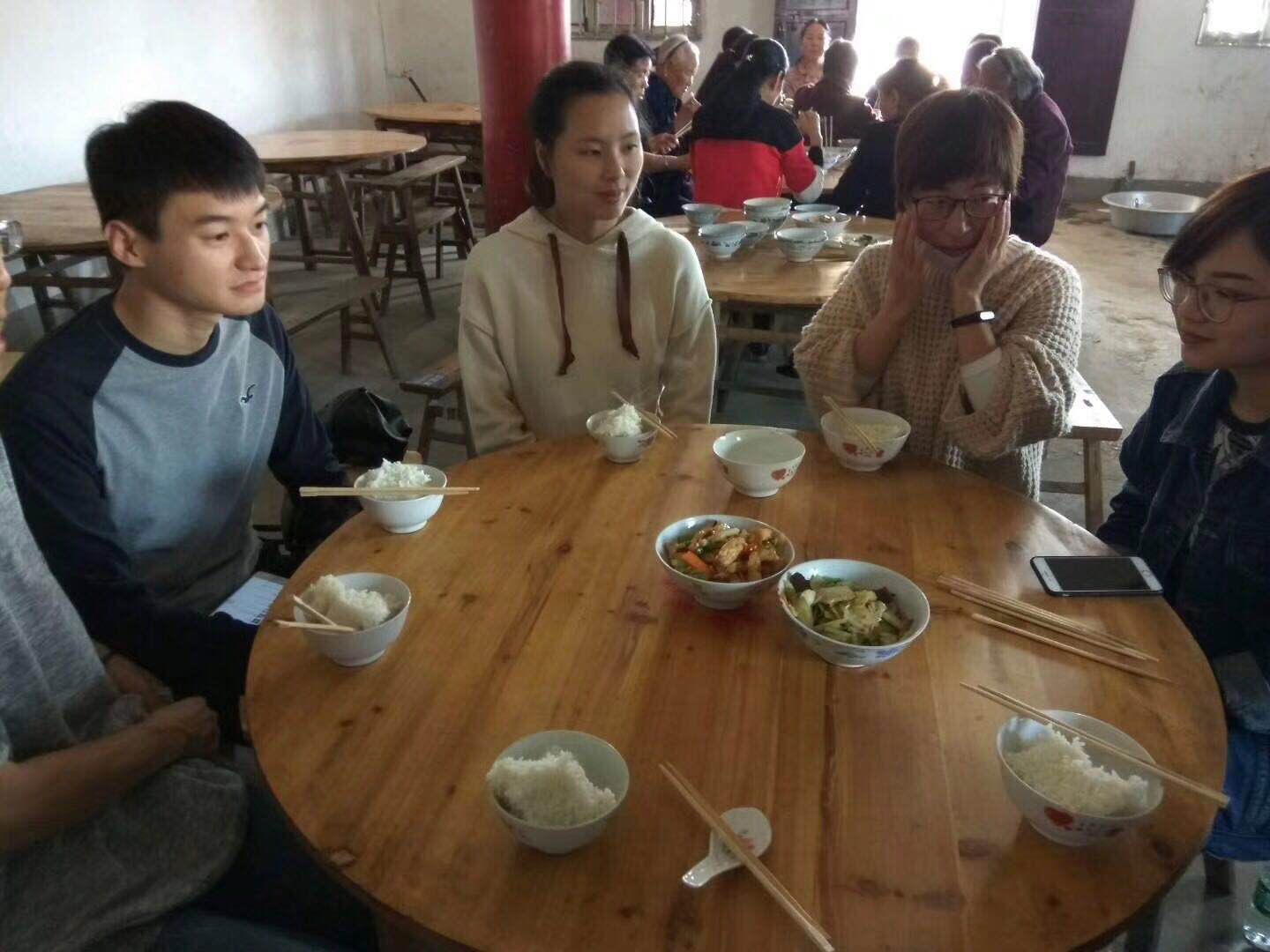 26日上午,考察团驱车抵达第一站:永兴县西河口村,实地考察了当地的苏圣庙及屏贵戏台。随后,一行人驱车前往三侯祠,实地考察湖南省非物质文化遗产——永兴县三侯祠重阳庙会。考察团对三侯祠的历史文化、戏台的经营管理、庙会的开展情况等各方面进行深入了解,收集整理出一批重要的一手资料。在永兴籍“老乡”李跃忠老师的热情邀请下,考察团全体成员在三侯祠重阳庙会亲身体验了一回流水席。
