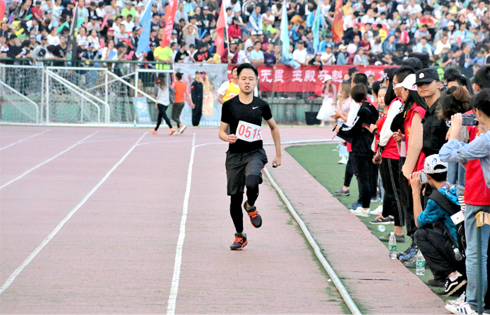 公司14级的杜萌,今年已经是一个大四的学长。大学四年,他每一年都参加了校运会。从大一参加时的紧张和兴奋,不考虑成绩,到大四时为了公司集体荣誉而战,杜萌与运动会的故事中充满了难忘的回忆。今年他参加的是男子4x400米接力赛,第一次跑第四棒,杜萌整体状态还不错,但仍有些不适应,也导致了在后面冲刺阶段腿有些发软,但他并不气馁:“人文的每一个运动员能参加并且坚持跑下来,对于我们来说就是胜利。”
