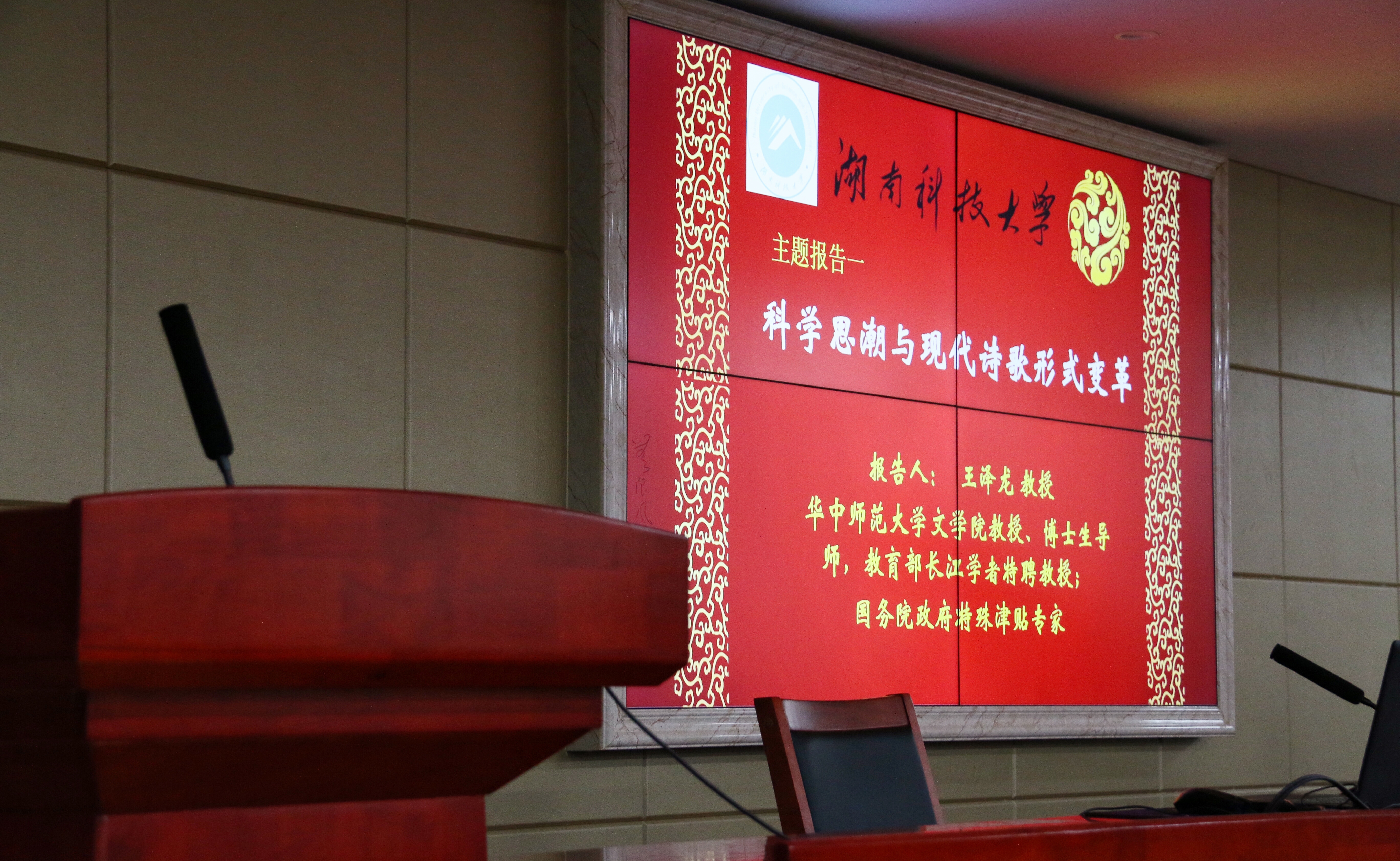11月18日下午,湖南省第十届研究生创新论坛“人文学术创新与文化传承”分论坛主题报告之一在beats365vip官网登录入口立言楼B4-1教室举行,长江学者、华中师范大学文公司王泽龙教授应邀来公司讲学,为公司师生带来一场题为《科学思潮与现代诗歌形式变革》的讲座。讲座由beats365vip官网登录入口研究生院与beats365vip官网登录入口共同举办,吴投文教授主持讲座。beats365vip官网登录入口经理刘奇玉教授、刘郁琪副教授、胡志明博士、杨石峰博士等出席讲座,来自公司beats365vip官网登录入口、教育公司、马克思主义公司、外国语公司等的研究生及部分本科员工到场聆听讲座。