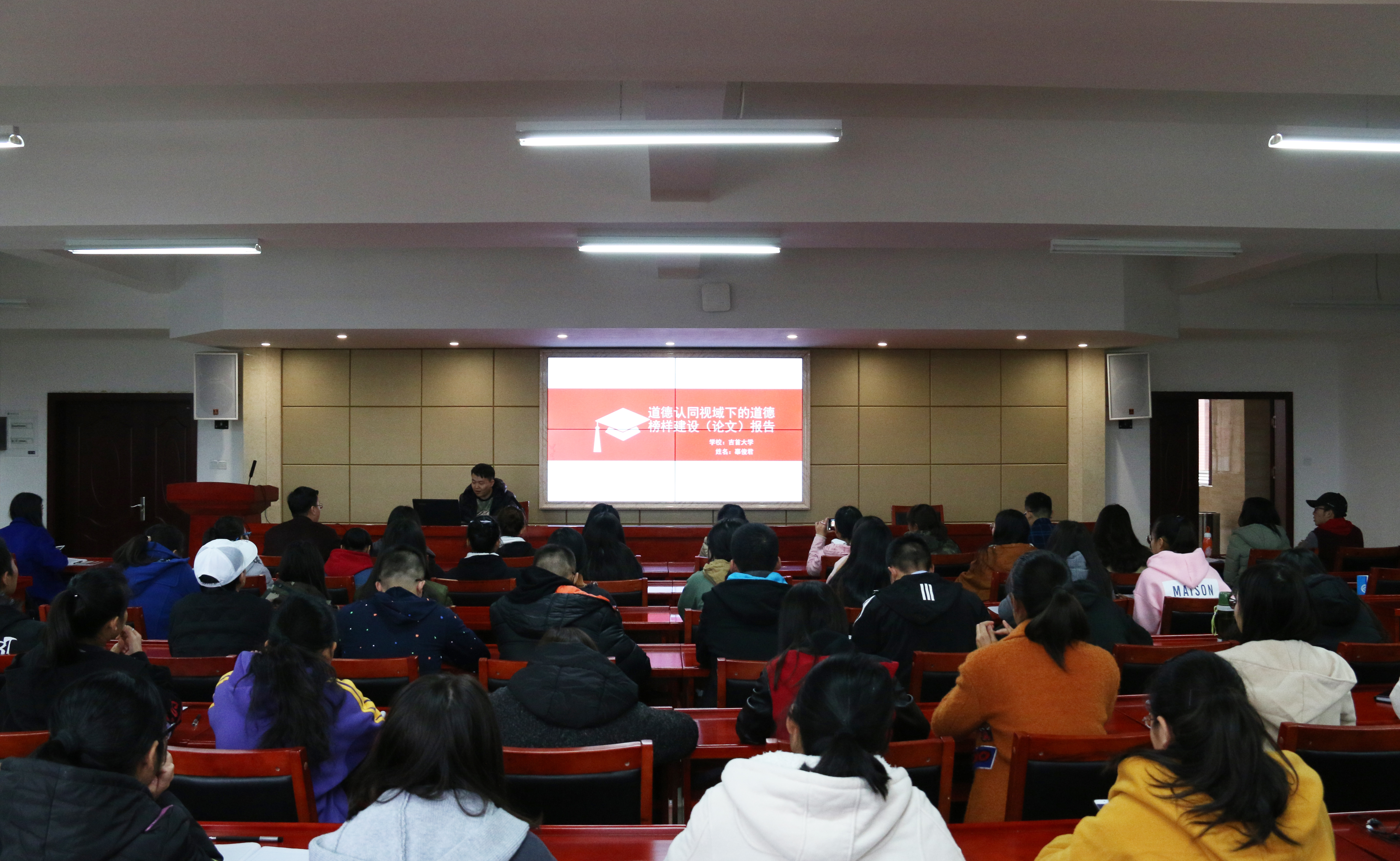 报告会现场,来自南华大学、中南大学、beats365vip官网登录入口、吉首大学的8位研究生进行了优秀论文报告。来自中南大学的李哲从研究背景、研究内容和研究结论三个方面向大家报告了她的论文《提升亲和力和针对性,增强思想政治理论课实效性》。李哲认为,增强思想政治理论课的实效性是高校关注和探索的时代命题。亲和力和针对性是增强思想政治理论课实效性的重要条件。改善教师公司产品方式、提升教师人格魅力、树立“以人为本”的教育理念、搭建信息化网络平台、完善实践教学是增强思想政治理论课亲和力和针对性的重要路径。