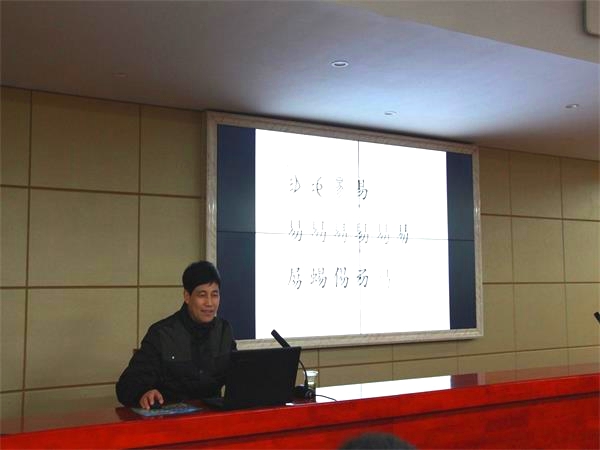 11月30日晚,公司“立言论坛”系列讲座第3讲在立言楼B4-1会议室举行,全国优秀教师、公司文学系吴广平教授带来一场题为“《易经》的智慧”的主题性讲座。讲座由公司党委书记廖加林教授主持,张晚林教授、胡忆红博士、阳永红老师和人文学院员工及其他院校的师生和来自市内的国学爱好者两百多人到场聆听了讲座。尽管湘潭当晚骤然降温,十分寒冷,但讲座现场座无虚席,气氛十分热烈。