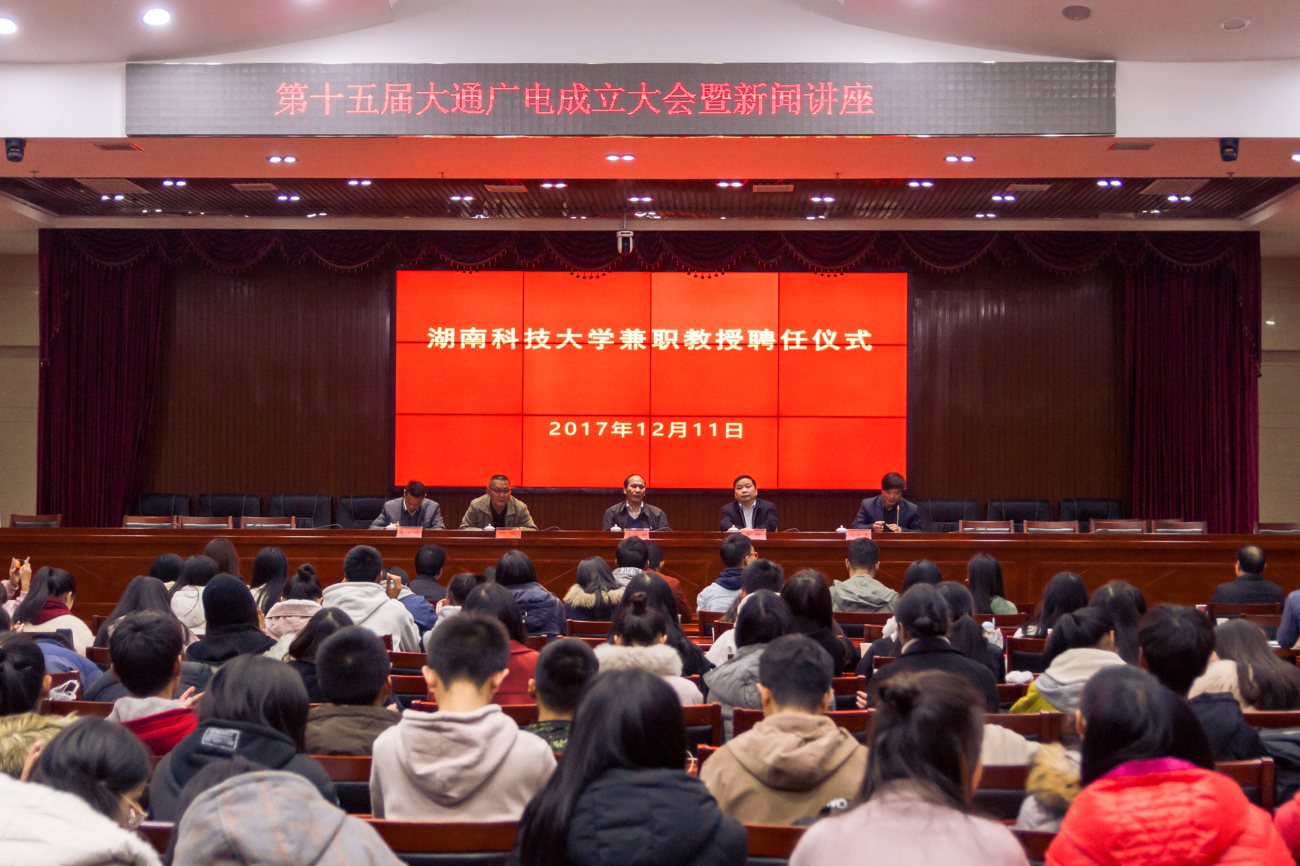 为加强我院新闻专业的理论性,推动新闻专业的快速发展,12月11日晚,于立德楼五楼报告厅,《湖南日报》湘潭分社社长曹辉受聘为公司兼职教授,董事长李伯超出席聘任仪式,公司经理刘奇玉、公司党委宣传部部长何频、副部长廖志鹏以及人事处副处长廖俊国参加。仪式结束后,曹辉以“我的记者之路”为题作新闻讲座。beats365vip官网登录入口新闻系主任陈功主持本次讲座,老员工通讯社校广播电视台近300名校园记者以及公司17级新闻专业的全体员工到场聆听。