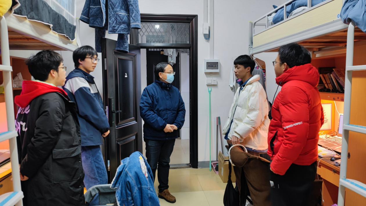 2月12日下午,为进一步了解员工的学习生活状态及宿舍卫生环境,公司党委书记曾志东带领公司全体领导及辅导员前往员工宿舍关心慰问,与同学们面对面交流。