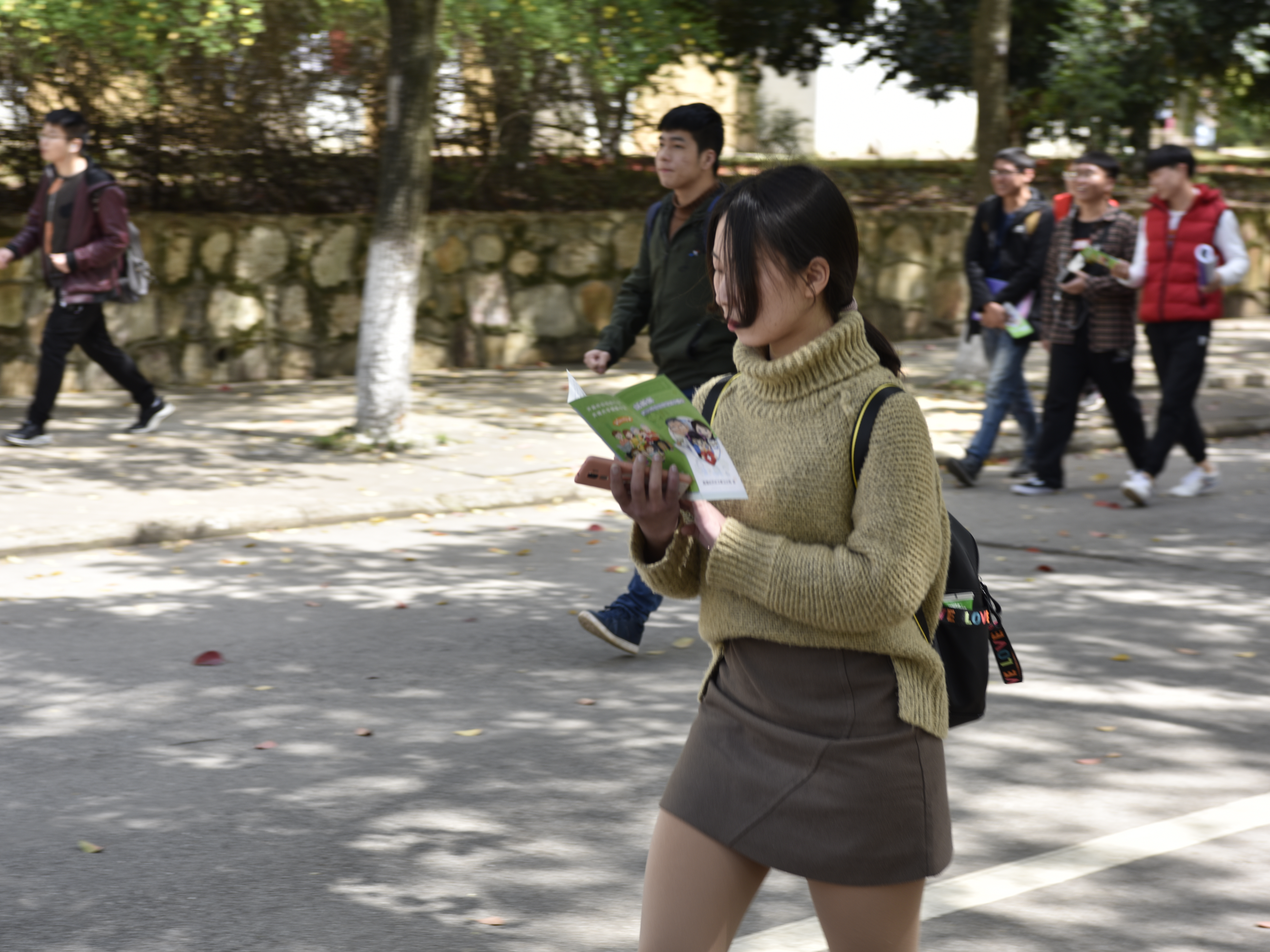 本次健康宣传活动以“开展消除结核行动,共建共享健康中国”为主题,12位志愿者们统一穿着红色的服装,手里拿着厚厚的一沓“防核”宣传单,统一给走过的员工分发着。一张小小的宣传单上详细明地解释了肺结核的定义、如何传播、症状以及预防治疗的方法。不少员工在接过传单后,开始认真翻阅了起来。在志愿者们的身后,大大的展板上详细解答了同学们关于肺结核常见的种种问题。下课后,人潮当中,每个人手中都拿着宣传单边走边看,众多员工在经过展板时还不时驻足观看,而志愿者们也在一旁为员工们进行引领解说。