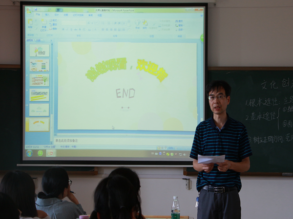 说课环节结束后,李学对此次比赛做出了总结。“举办本次说课比赛非常有必要,同学们也都做得很认真,”他说,并表示以后将会开展有关讲课教学方面的课程。而对于部分同学语速过快,PPT字体太小、说课文稿标点使用错误等一些问题,李学也给出自己的建议,说课主题内容大致都是固定的,但我们要将教学目标与教学过程有机结合为一个整体,才能达到好的效果”。