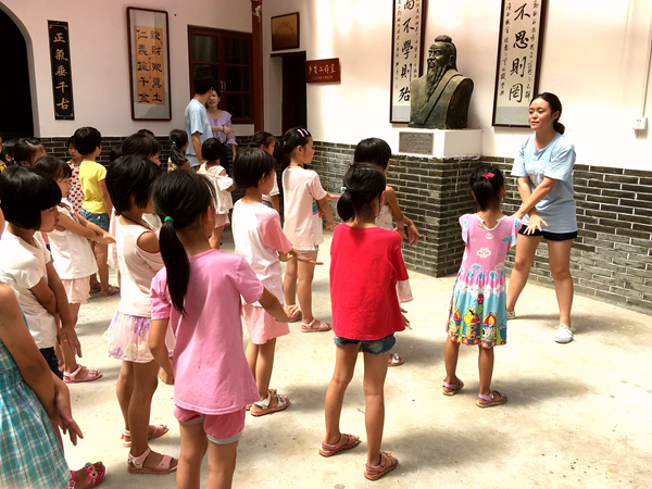 乡贤馆内的课堂总是丰富多彩,并且针对不同年级实行不同的教学方式。上午的低年级课程以体育课为主,让孩子们走出教室锻炼身体,解放活泼好动的天性。