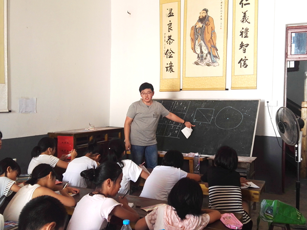 “嚯,哈!”二年级的男孩子纷纷选择跟随志愿者刘奇学习武术操,在小广场上操练得有模有样。一旁的女孩子们则随着志愿者唐竞男上起了舞蹈课,她们舞动着灵活的肢体,对《C哩C哩》这样快节奏的舞步也学得十分迅速。“武术操只是在中学时偶然学过,没想到会在这里发挥作用,更没有想到这么受男孩们欢迎。”提起武术操的创意来源,刘奇笑着说道。