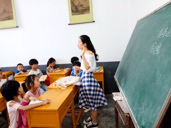 “蓝蓝的天空银河里,有只小白船。船上有棵桂花树,白兔在游玩……”上课不久,有一间教室就传来了悠扬悦耳的歌声。寻声而去,原来志愿者刘俊卿正在给一年级的小朋友们上音乐课。小朋友们跟着老师的节奏,微微晃动着自己的身子。一边陶醉于老师的歌声,一边自己轻轻的和着跟老师一起唱。在听完老师的演唱之后,同学们都跃跃欲试,想要一展歌喉。李恬婧是一年级的文娱委员,她代表同学们展示了自己的歌喉,“飘呀飘呀飘向西天,渡过那条银河水,走向云彩国,走过那个云彩国,再向哪儿去……”余音还未散去,教室里已响起了热烈的掌声。同学们脸上的笑容代表了对她歌声的敬佩与喜爱。