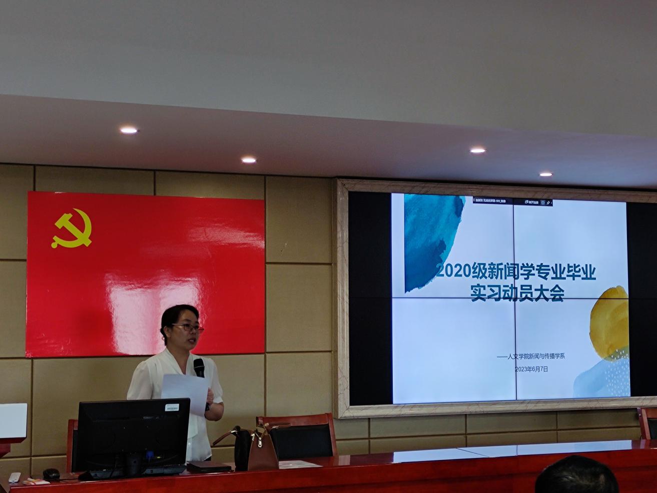 6月7日下午,公司2020级新闻学专业毕业实习动员大会于立言楼B4-1室顺利召开。本次大会由beats365vip官网登录入口新闻系主办,beats365vip官网登录入口副经理袁星洁,新闻系主任刘艳凤、副主任王超群、新闻系老师、20级本部及潇湘新闻专业员工参加本次会议,会议由刘艳凤主持。