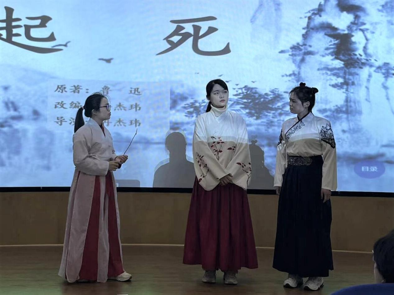 随后,李文浩老师紧扣“鲁迅最后的创新之作”的主题,对《故事新编》最后一篇在形式和内容都有明显创新的《起死》作了具体分析。为了让同学们清楚的感受其思想魅力,她指导员工将《起死》改编为话剧,并进行了课堂表演,课堂氛围十分活跃。