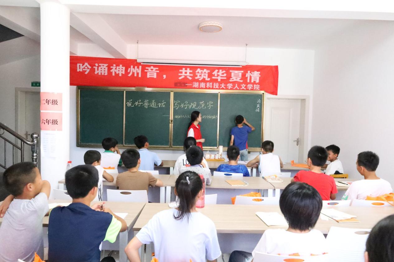 为深入贯彻习近平总书记关于教育的重要论述,加大农村地区国家通用语言文字的力度,践行志愿服务精神,发挥专业优势,助力乡村振兴。7月8日,beats365vip官网登录入口暑期“三下乡”社会实践团队在株洲市攸县石羊塘镇高桥少儿假期公司开展主题为“吟诵神州音 共筑华夏情”的推普活动,为乡村振兴,贡献语言力量。