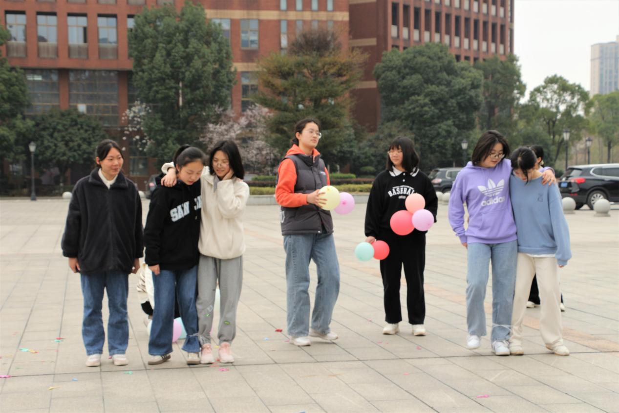 立言楼前明湖广场,班级趣味游戏正如火如荼地进行着。游戏将踩气球和两人三足相结合,考验同学们的默契与协调能力。游戏开始后,同学们一个个跃跃欲试,玩得不亦乐乎,现场欢声笑语不断。