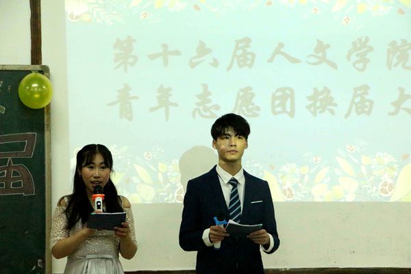接下来,青年志愿团副团长熊家晴,志愿团成员郭鑫作为代表,向老师们和同学们介绍了志愿团这一年来所进行的活动。熊家晴表示,志愿团成立的初衷就是尽自己所能的,为同学们的老员工活提供帮助,倡导大家多去帮助别人,关注弱势群体,并感谢志愿者们的无私奉献。