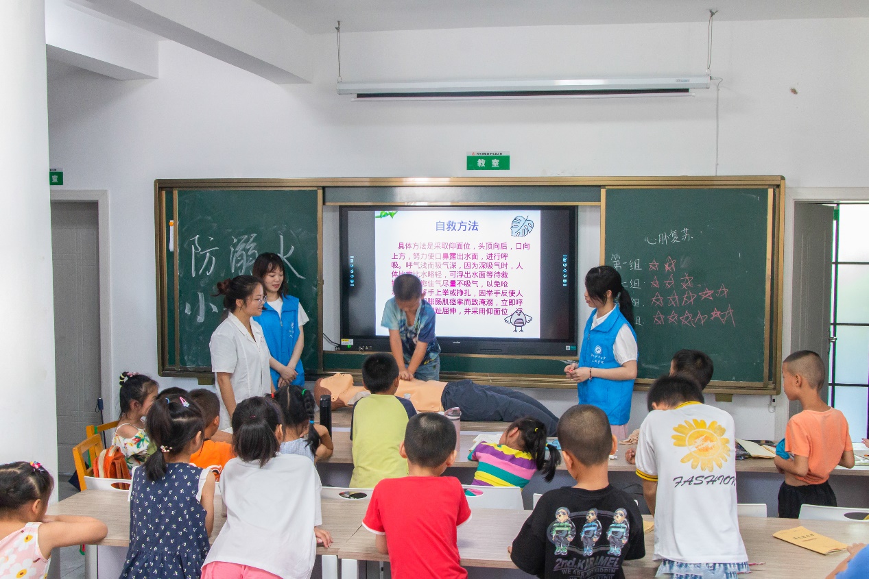 生动有趣的宣传片、迫真细致的场景模拟、和谐有爱的互动交流......一场热闹非凡“防溺水”安全教育课,为员工们送上一份详实的“溺水急救指南”。暑期“三下乡”实践团队指导老师曾思妍说:“我们给孩子们上这样一堂课,希望他们可以掌握一些急救的知识,比如心肺复苏、人工呼吸,然后也让他们掌握一些自救知识,在他们万一遇到紧急情况的时候,能够有一定的安全意识。”