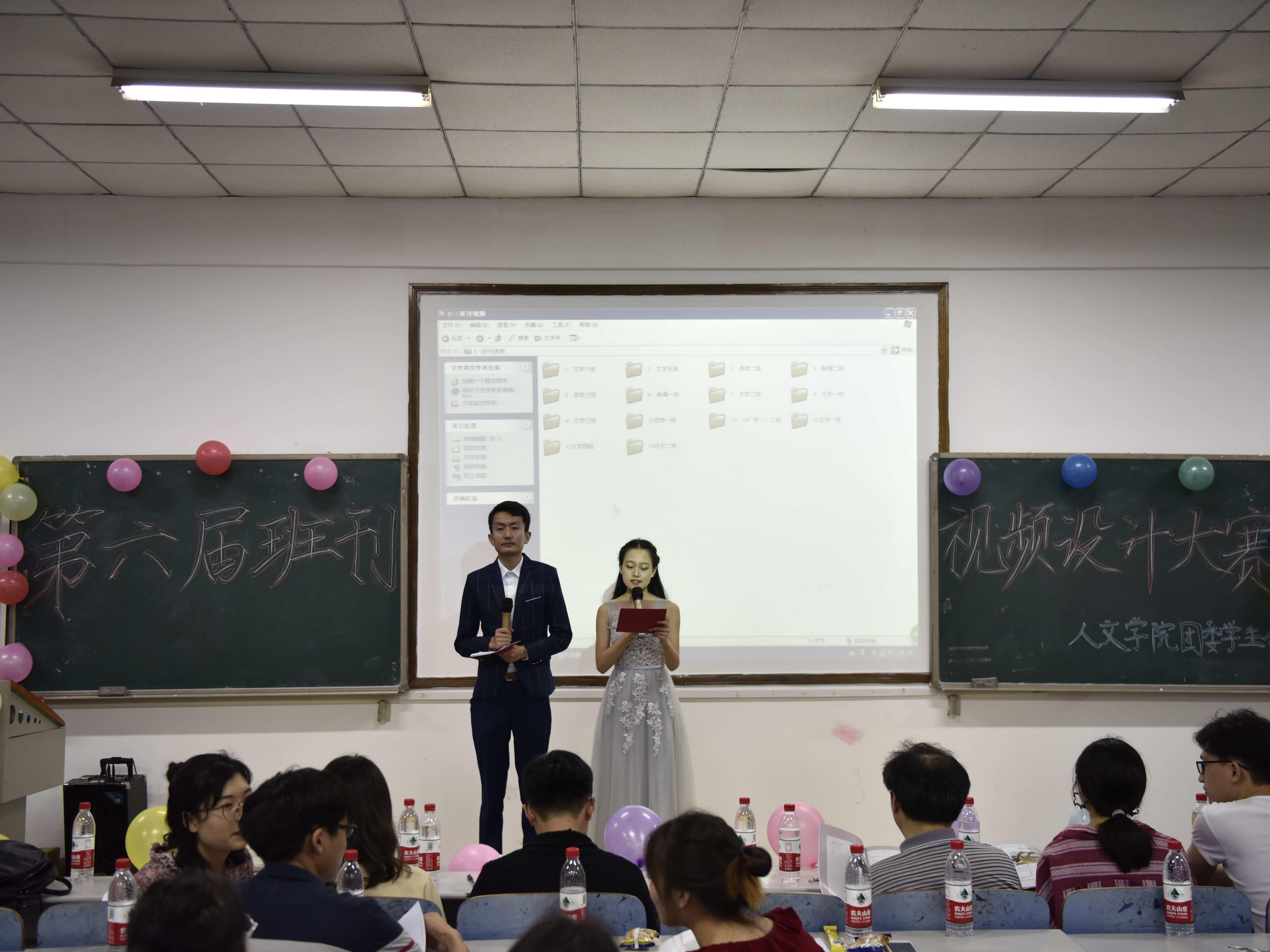 为激发员工创造与想象力,提高班级凝聚力,丰富员工老员工活,4月20日晚,第八教学楼1-3教室挂满气球彩带,迎来公司第六届班刊视频设计大赛决赛,学工办成伟明老师、赵华老师、钱子凡老师出席并担任嘉宾,研究生院主席邬林明、老员工通讯社社长彭澎以及公司员工会主席李煜、各部门部长担任评委,17级各班同学到场观看。