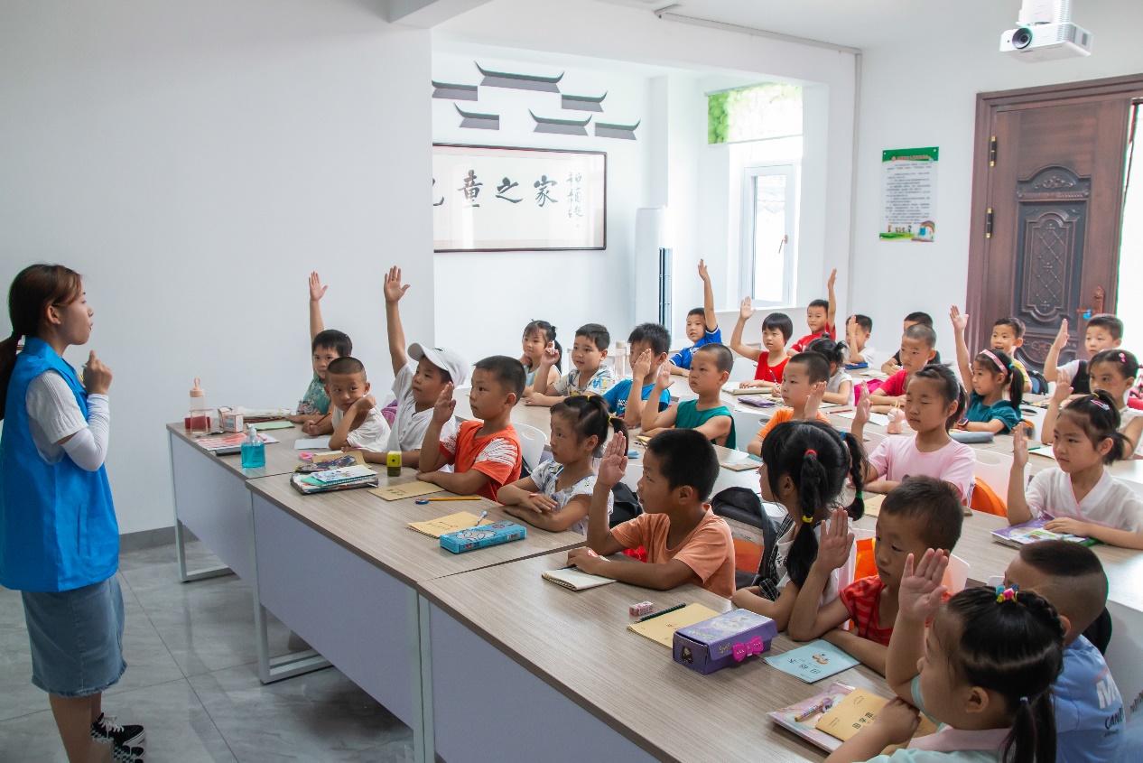 一年级数学课堂上,志愿者郑添卉笑着问道:“大家觉得数学好玩吗?”“好玩!”台下的同学们异口同声道。“没关系,满怀教学热情的老师会带大家慢慢走进数学奇妙世界,让大家发现其中有趣的东西。”二年级的语文课上,志愿者吕飞叶让同学们在黑板写名字,以此认识每个员工,并且纠正他们的笔顺错误,规范其书写顺序。三年级的美术课,琳琅满目的书法书法美术作品吸引住台下一寸寸的目光,志愿者龙子尧为同学们介绍国画、水墨画、壁画、刺绣、雕塑等,引起他们的热烈讨论。