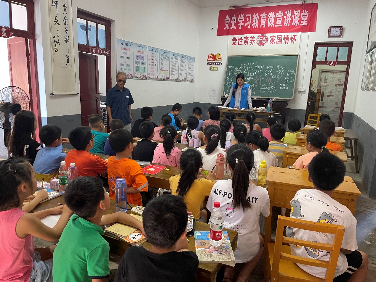 “今天是入伏第一天,天气很炎热,不能让高温影响这些孩子的学习。”夏教授止不住对员工们的牵挂,顶着烈日默默站在教室后门、悄悄倚在教室侧窗边,赤脚奔波于各个班级,时刻关注留守儿童们的上课情况。