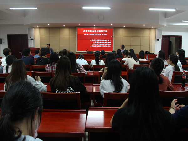 为了增强员工对岳麓书院和湖湘文化的了解,提升历史文学涵养,9月25日晚,公司邀请湖南大学古籍整理研究所所长、中国书院研究中心主任邓洪波教授于立言楼B4-1举行以“岳麓书院山长与湖湘文化”为主题的学术讲座。本次讲座由金身佳教授主持,公司欧阳萍副经理、徐红教授、戴书宏、宋登卯讲师以及16、17级历史学专业的员工代表到场聆听。