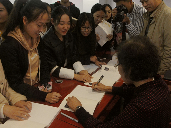 讲座一直持续了两个半小时,新闻系100余名员工聆听了讲座。最后,李玲女士现场签名给员工赠送了她的专著《四十而丽》。