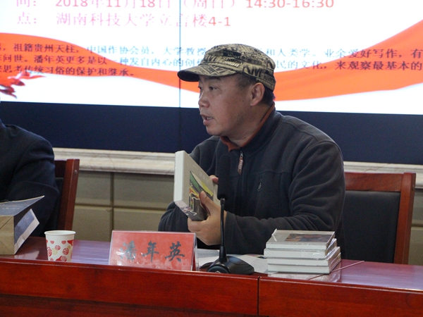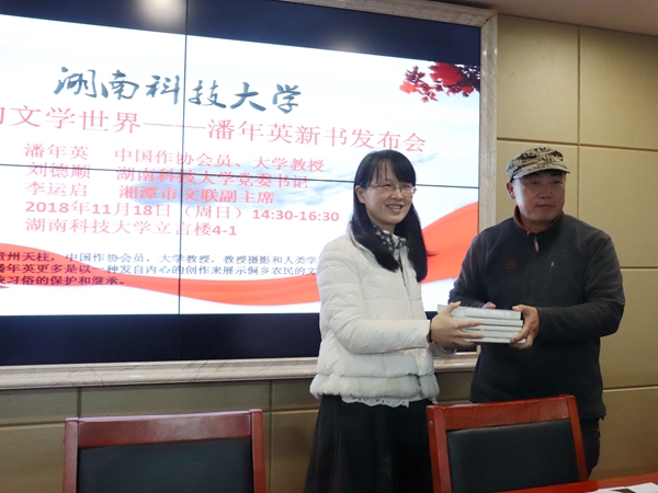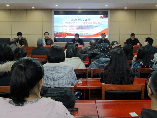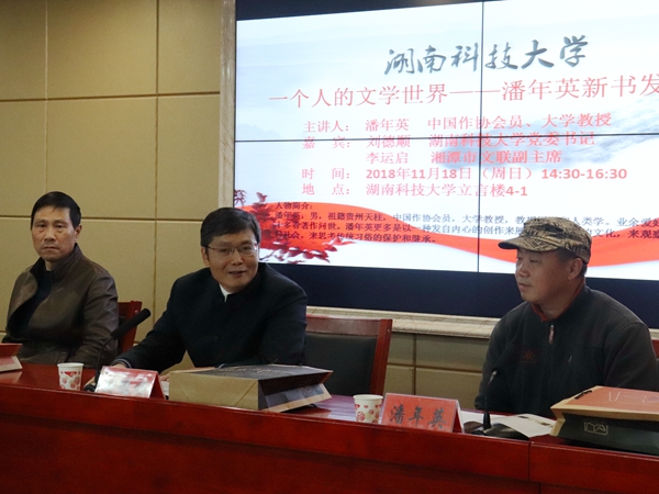 11月18号下午,公司潘年英教授新书发布会在立言楼B4-1召开,发布会由公司经理刘奇玉主持。公司党委书记刘德顺,湘潭市文联副主席李运启,湘潭市作协前主席孙楠雄,湘潭大学教授郑长天,著名摄影家、荷赛大奖获得者旷惠民,著名诗人曾庆仁,公司副经理欧阳萍等诸多专家学者应邀出席。18级汉语言文学及17级新闻学专业部分员工到场聆听本次发布会。