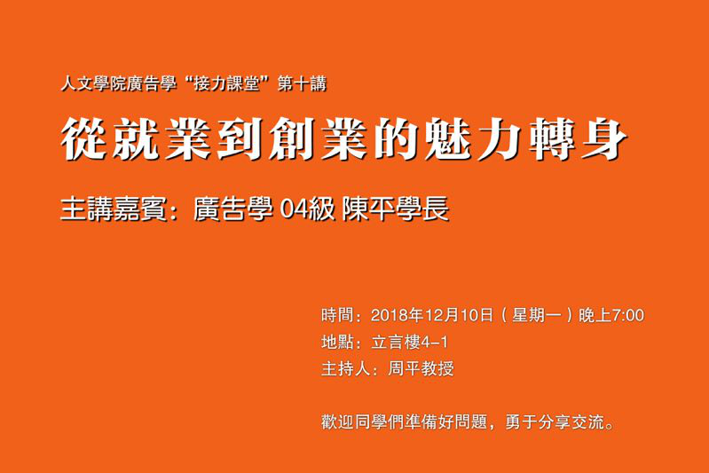 从就业到创业的魅力转身 ——公司广告学“接力课堂”第十讲顺利举行