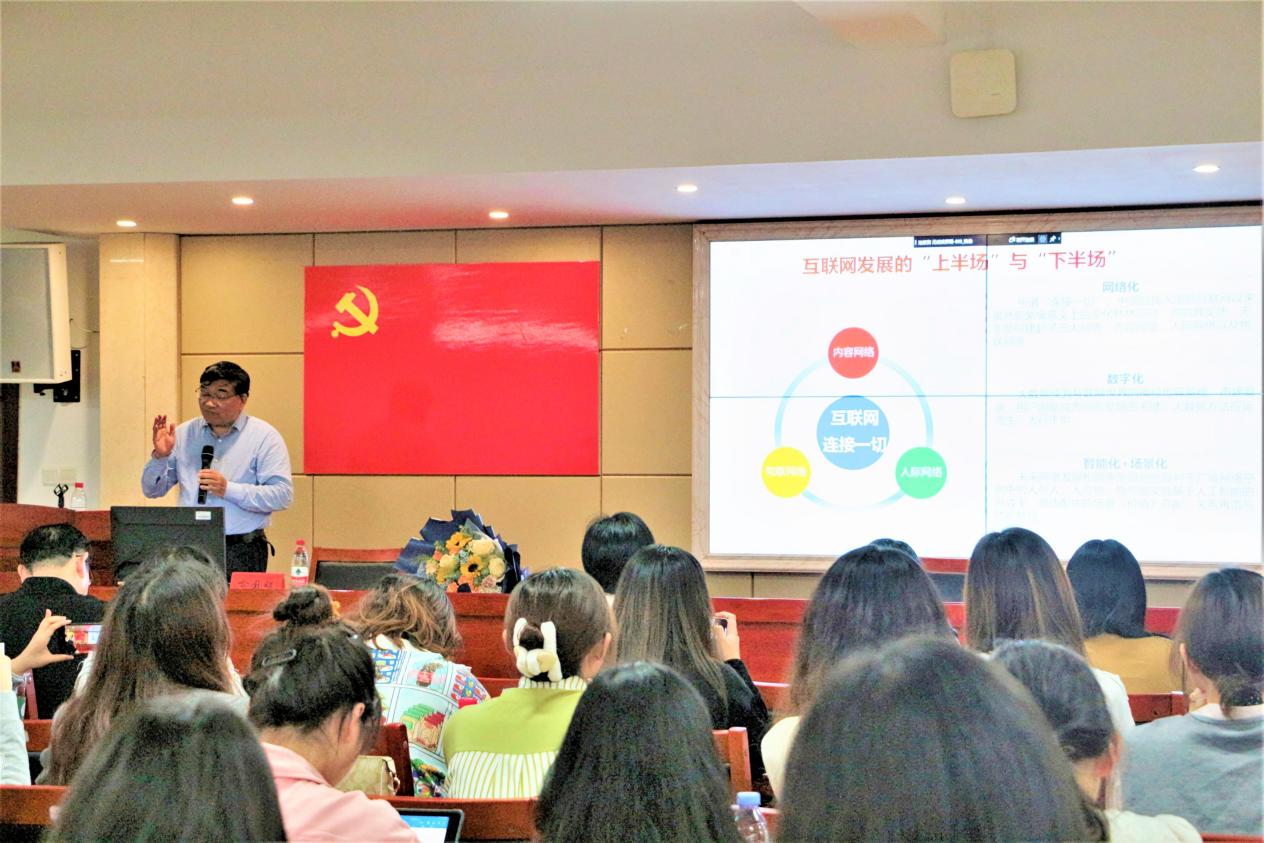 4月14日,教育部长江学者特聘教授、第七届国务院学位委员会新闻传播学学科评议组成员、北京师范大学新闻传播公司学术委员会主任、中国新闻史学会传媒经济与管理专业委员会理事长喻国明教授应邀来校,为广大师生作了“元宇宙、AIGC与传播革命”的学术讲座。讲座由beats365vip官网登录入口副经理袁星洁主持。